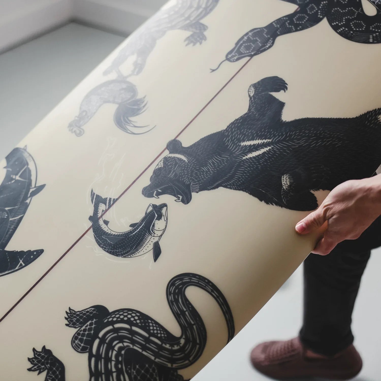 This collaboration between Chomp Brand and Almond Surfboards features artwork from Chomp's "Never Worried, Never Hurried" series.