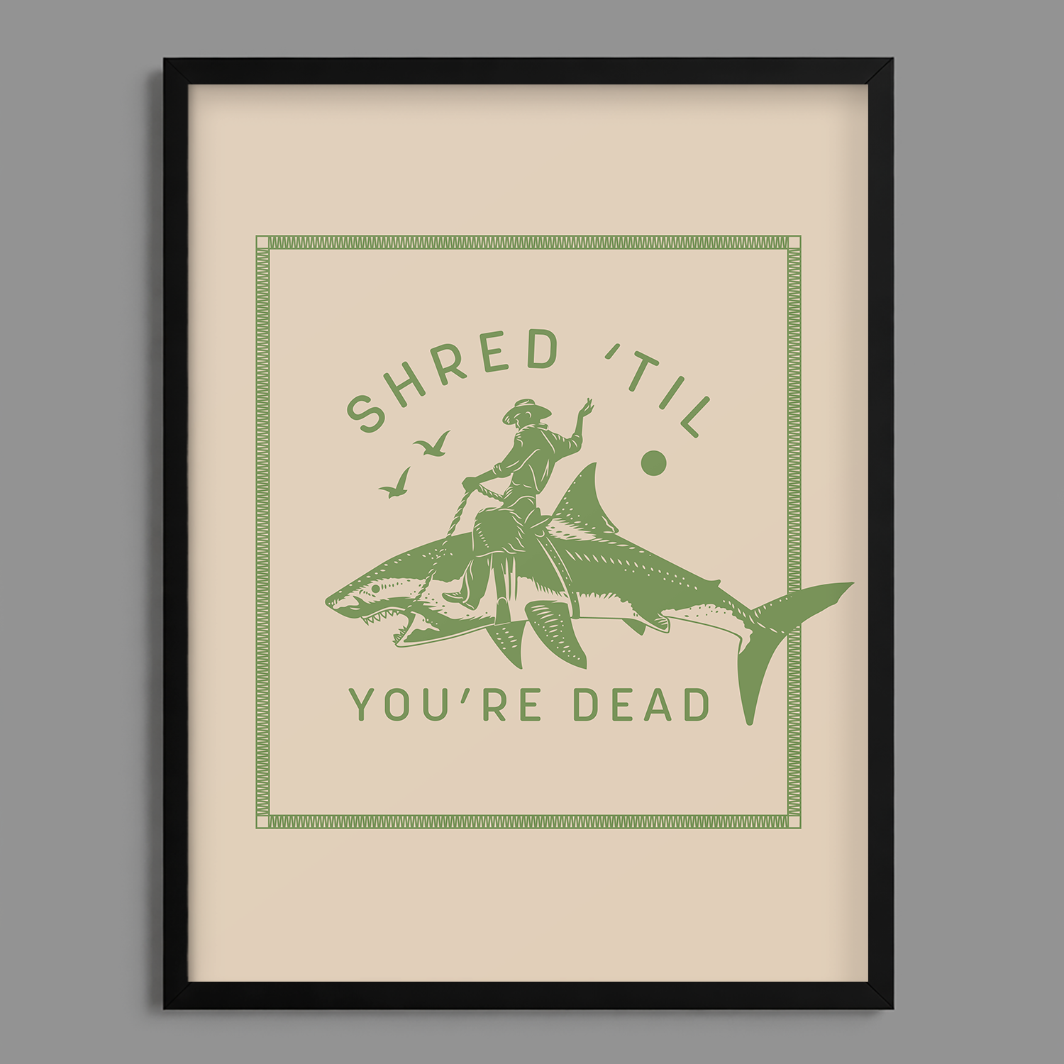 Cowboy Riding Shark Art Print